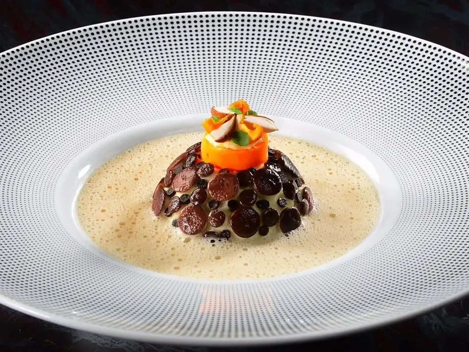 Mussels, lobster bisque, heirloom tomato & summer herbs.